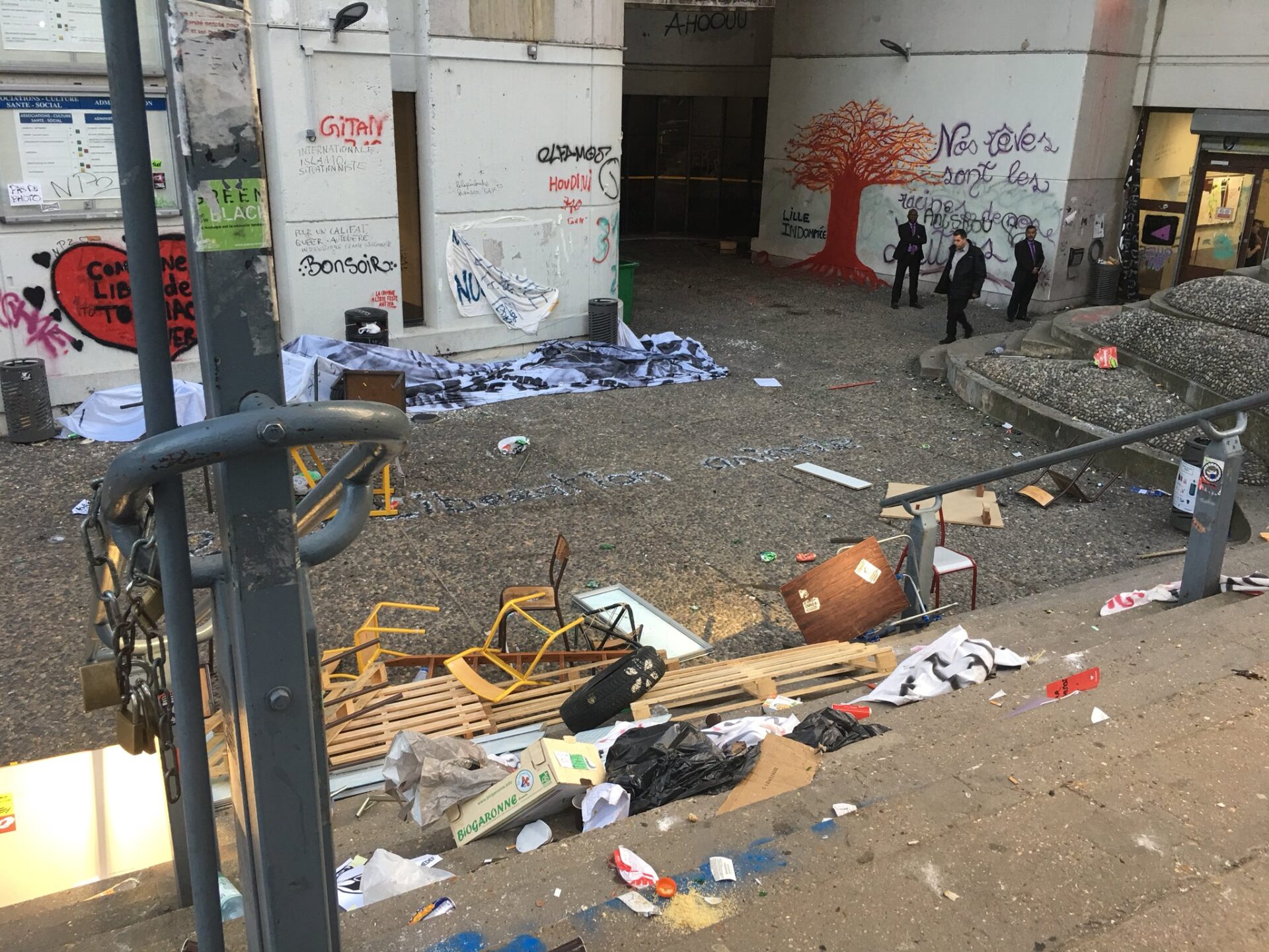 Tags sur les murs, mobilier cassé... Les dégâts à la faculté de #Tolbiac sont estimés entre 600 000 et 800 000 euros. Photos de @judenoyelle
