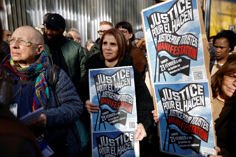 Manifestation, le 21 février 2026 à Paris, pour réclamer "justice", plus d'un mois après la mort d'El Hacen Diarra lors d'une garde à vue dans un commissariat du XXe arrondissement de la capitale