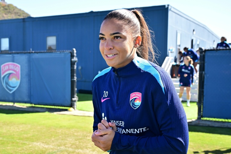 Delphine Cascarino à une séance d'entraînement du NWSL San Diego le 19 mars 2025 à Del Mar, en Californie. "J'ai adoré ma vie à San Diego", dit l'internationale française qu a rejoint les London City Lionesses en janvier. "Le seul inconvénient, c'est que c'était loin."