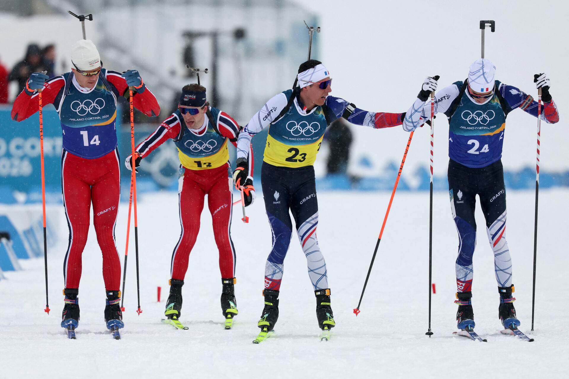 L’équipe de France de biathlon décroche l’or olympique en relais masculin et fait tomber les records historiques de Sotchi (2014) et de Pyeongchang (2022). Avec ce premier titre olympique en relais masculin, l’équipe de France efface des tablettes son précédent record de 15 médailles aux Jeux Olympiques d'hiver.