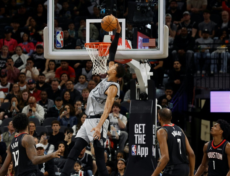 Après ses larmes de joie vendredi lors d'un improbable retour contre les Los Angeles Clippers, Wembanyama a gardé les émotions et l'intensité au maximum avec une nouvelle démonstration de force contre les Houston Rockets, battus 145-120.